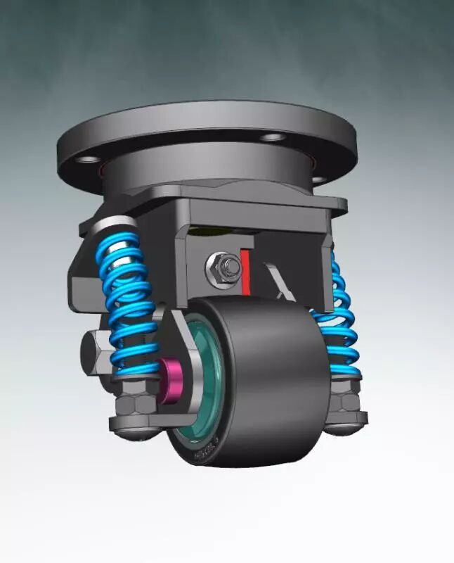 目前此款脚轮具备5大特点——“小型化、150kg负载、二级减震、1%横推力、平面轴承结构”。